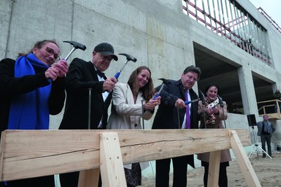 Nach der Grundsteinlegung vor rund zweieinhalb Jahren konnte nun der Rohbau fertiggestellt werden. Stellvertretend für alle am Bau Beteiligten dankte Finanzminister Reinhard Meyer den Planern, vor allem aber den Baufirmen für die großartige Arbeit, die in den vergangenen Monaten geleistet wurde: „Das künftige Zentrum unserer kulturellen Werte hat viele Mütter und Väter. Alle, die an diesem Bau beteiligt sind, leisten Historisches, denn sie bauen hier am Gedächtnis Meck-lenburg-Vorpommerns.“