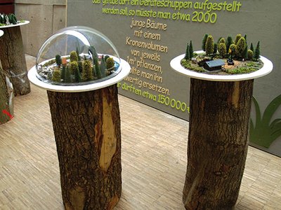 Begonnen im „Internationalen Jahr des Waldes 2011“, angeknüpft an das Projekt „Bäume für die Mongolei“ haben Schüler des Gymnasiums unter der Leitung der Fachlehrerinnen Christine Detenhoff und Doreen Kaltenstein zwei Jahre gestrichen, gebastelt, geklebt sowie zusammengefügt, was zusammen gehört. Und was sie da geschaffen haben, kann sich sehen lassen: ein 5,30 Meter hoher und 3,90 Meter breiter Baum aus sage und schreibe 1.300 Holzbuchstaben. Der Text umschreibt den Wert eines Baumes und beim Lesen wird sehr schnell klar, welche Bedeutung Bäume für die Umwelt haben und was es hieße, wenn man diesen Baum z.B. für eine neue Garage fällen würde. Komplettiert wird dieser lebensgroße Buchstabenbaum durch fünf gebastelte Landschaftsmodelle, die die Bedeutung des Waldes darstellen. Er ist Wind-, Lärm- Lawinen- und Erosionsschutz, er erzeugt lebensnotwendigen Sauerstoff und bindet giftiges Kohlenstoffdioxid. Der Wald liefert viele Rohstoffe, schafft Arbeitsplätze, bietet Lebensraum für Tiere, Pflanzen, Pilze und Mikroorganismen. Für uns Menschen ist er Erholungs- und Entspannungsort.