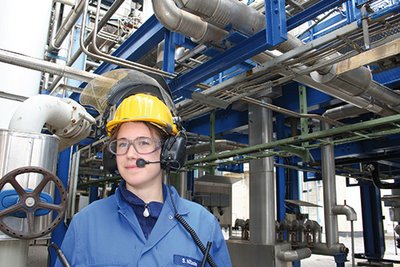 „Unser Betrieb ist als Düngemittelwerk bekannt. Natürlich hat der Beruf auch etwas mit Chemie zu tun. Aber eigentlich ist er etwas für Technikinteressierte. Wir als Anlagenfahrer überwachen, ob alle Aggregate korrekt laufen, wir setzen Chemikalien an, kontrollieren die Pumpen, Ölstände, Temperatur. Und wenn etwas passieren sollte, müssen wir reagieren – so, dass es möglichst wenige Auswirkungen auf die Umwelt und die Anlage hat. Später könnte ich mich innerhalb des Unternehmens weiterbilden, könnte Schichtleiter werden oder sogar ein Studium machen. Aber das weiß ich noch nicht. Erst kommt der Berufsabschluss, und es sieht so aus, als ob ich übernommen werde. Das würde mich freuen, denn ich wollte nie weg aus der Gegend, ich bin hier zu Hause.“