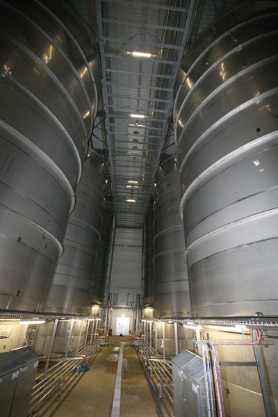 „Willkommen im Apfelland“ sagen die Plantagen rechts und links der Straßen, ist man rund um Dodow, Schwechow, Warlitz, Hagenow oder Bantin mit dem Auto unterwegs. „300 Hektar pflanzen wir gerade neu“, ergänzt Jehring. 25.000 Tonnen Ernte werden in diesem Jahr erwartet. Und auch wenn diese Menge Äpfel schon das Vorstellungsvermögen jedes Laien sprengt: Es wird zugekauft, von Obstbauern und Zwischenhändlern aus ganz Norddeutschland. 40.000 Tonen kommen so pro Jahr zusammen. In der Erntezeit, so wie jetzt, transportieren die Laster unaufhörlich Apfelbäckchen zur Verarbeitungsstätte. Dort wachen Bereichsleiter Rüdiger Brandtstätter – natürlich aus Dodow – und seine Kollegen über die im Schichtbetrieb fortlaufende Entsaftung. Anders als beim privaten Saftmachen wird die Flüssigkeit hier unmittelbar nach dem Pressen hoch erhitzt, um die Wirkung der apfeleigenen Pektine zu unterbinden. „Dieses Enzym würde sonst dafür sorgen, dass sich zum Beispiel im naturtrüben Apfelsaft irgendwann eine dickere Schicht absetzt“, begründet Brandtstätter. „Das hat auf den Geschmack überhaupt keinen Einfluss, der Saft würde im Supermarkt aber eher stehen bleiben, weil er optisch nicht so schön ist.“ Später, vor der Einlagerung in die riesigen Saft-Tanks, folgt eine zweite Erhitzung, die den Saft steril und damit beständig macht. Zwölf Tanks mit einem Fassungsvermögen von jeweils 1,5 Millionen Liter hat das Unternehmen jüngst gebaut, jeder 18 Meter hoch und mit einem Durchmesser von 13 Metern.