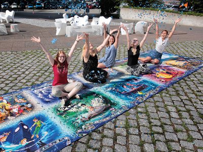 Fertig zusammengesetzt ist es aber nicht. Insgesamt 13 Stunden haben große und kleine Besucher des Spielwarenmarktes Zeit, aus den Teilen ein Ganzes zu machen. Korrekt zusammengefügt ergibt sich am Ende ein großes längliches Rechteck mit gleich zehn märchenhaften Motiven (siehe Foto). Alle, die fleißig mitpuzzeln, erhalten zur Belohnung für ihren Einsatz am Ende ein Postkarten-Puzzle geschenkt.