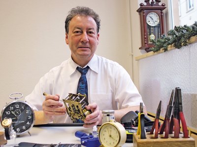 „Your-Time“. Geöffnet ist dann montags, dienstags, donnerstags und freitags jeweils von 10 bis 18 Uhr. „Außerdem bietet ich meinen mobilen Service an, komme also zu den Kunden nach Hause, um zum Beispiel eine schwere Standuhr zur Reparatur abzuholen“, sagt Thomas Schrader.