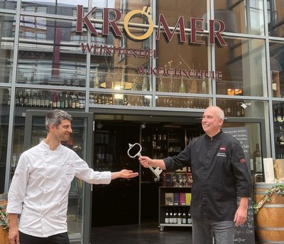 Robin Weiland absolvierte im Weinhaus Uhle beide Lehren zum Koch und zum Restaurantfachmann. In Schwerin kennt man ihn als Eventcaterer auf hohem Niveau. „Bislang konnte man mich nur exklusiv buchen für Hochzeiten, Betriebsfeiern oder private Events“, erklärt Robin Weiland. Ab 1. Januar hat er nun mit dem Weinhandel und der Kochschule Krömer einen festen Standort im Brunnenhof der Schweriner Höfe. Er freut sich auf die Übernahme: „Es wird natürlich Veränderungen geben, aber die qualitative Weinberatung und die Kochevents bleiben erhalten. Weiterhin wird mich auch Michael Doege, den viele aus dem Weinhandel kennen, begleiten.