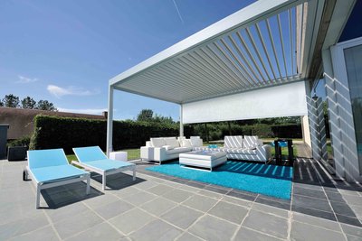 Diese meist freistehenden Aluminiumkonstruktionen sind nicht nur ein optisches Highlight für Terrasse und Garten, sie bieten auch Technik, die begeistert. Auf Knopfdruck lassen sich die Aluminiumlamellen um bis zu 135 Grad in der Neigung verstellen oder komplett zur Seite schieben – alles motorgesteuert.
