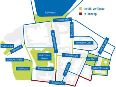 Seit Kurzem kann auch in der Mecklenburgstraße vom Pfaffenteich bis Höhe Helenenstraße und Kressmann sowie zwischen Mecklenburgstraße und Markt ohne Unterbrechung gesurft werden.