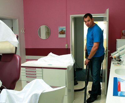 Die Patienten der Zahnarztpraxis werden am Montag nicht schlecht gestaunt haben: Als wäre ein Dutzend fleißiger Kobolde über das Wochenende in die Praxis eingefallen, glänzten und dufteten die Räume in unvergleichlicher Frische. Die kam nicht von ungefähr: Am Freitag zuvor hatten HDS-Chef Christian Feichtinger und sein Mitarbeiter die etwa 150 Quadratmeter der Zahnarztpraxis tiefengereinigt. Ein Prozedere, das vor allem in medizinisch genutzten Räumen, aber auch in anderen Büros zusätzlich zur normalen Reinigung für hygienische Sauberkeit sorgt. „Ein wichtiges Element ist die Polymer-Beschichtung der PVC-Böden“, so Feichtinger, selbst Meister des Gebäudereinigerhandwerks „Das erzeugt einen starken Glanz, als wäre der Boden nass. Er ist aber absolut trittsicher und auf diese Weise geschützt gegen künftige Verschmutzung.“ Auch die Teppichböden wurden tiefenwirksam gereinigt – als jahrelanger Stammkunde der HDS kann sich das Praxisteam eben auf die gründliche Arbeit der Reinigungsleute der HDS verlassen.
