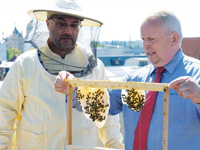 Till Backhaus lobte diese Initiativen: „Die Zahl der Bienenvölker in MV wächst wieder“, freute sich der Minister, der mit dem Programm „Mehr Respekt vor dem Insekt“ selbst eine Strategie für den Insektenschutz in MV auf den Weg gebracht hat. 80 Prozent der Nutzpflanzen, sagt Backhaus, seien auf Insekten als Bestäuber angewiesen. Zurzeit gibt es 25.000 Bienenvölker in MV, die eine Ernte von rund 700 Tonnen Honig im Jahr zusammentragen.