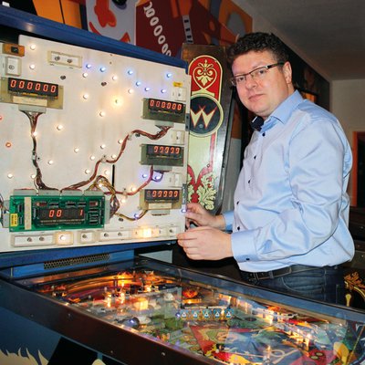 Unseren Fototermin im Museum nutzte er gleich, ein bisschen etwas über Funktionsweise und Aufbau der unterschiedlichen Flipper zu erläutern. Die Vor- und Nachteile von LEDs und Glühlampen erwähnte er dabei ebenso wie Anordnung und Aufgaben der Steuereinheiten. „Letztlich“, sagt er, „sind die Flipper nichts anderes als Computer.“ Überhaupt sei er immer noch „ziemlich computeraffin“. Er hat zu Hause sogar einen eigenen Mediaserver in Betrieb, auf dem auch Überwachungssoftware für sein Eigenheim in Stralendorf liegt. Sie liefert ihm unter anderem Kamerabilder von Haus und Hof aufs Smartphone.