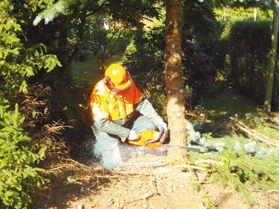ersten Schnitt an echtes Profigerät zum Einsatz – keine mühseliges Hantieren mehr mit Fuchsschwanz und Co. Das gilt übrigens auch für die Entfernung einzelner Partien im Gehölz. „Große Äste können sogar mehr Arbeit bedeuten als ein ganzer Baum“, weiß der Chef Christian Feichtinger, „denn es muss zusätzlich auf den Schutz des restlichen Baumes geachtet werden.“ Wer hier an der falschen Stelle spart – das hat die Erfahrung bereits mehrfach gezeigt – kann manchmal im Garten noch einmal ganz von vorn anfangen…