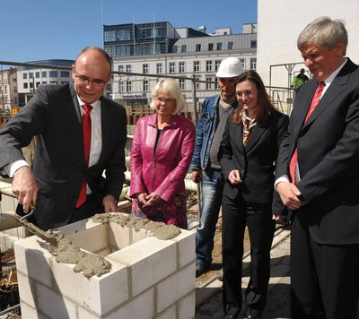 Baurat, Baumeister und Gesell, den Grundstein einfügen.