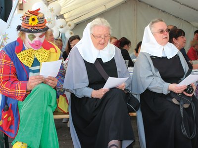 Zu Beginn des Festes sangen die Feiernden gemeinsam „Alle Dinge sind möglich“ und das „Seerosenlied“, das von Kindern und Mitarbeitern des Hauses geschrieben wurde. Katharina Ratziwitz begleitete sie auf der Gitarre. Für Unterhaltung sorgte auch der Clown Kai Bergmann von der Kunsthalle Alt Meteln, der Kinder und Erwachsene mit Seifenblasen bezauberte.