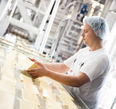 Wenn in der Ostsee-Molkerei jemand „Alter Schwede!“ sagt, dann ist das nicht Ausdruck der Verwunderung über etwas, sondern nur der Name einer der beliebtesten Käsesorten, die hier aus frischer Kuhmilch hergestellt werden. Würzig und außerordentlich aromatisch, ähnlich schmeckt der beliebte Tilsiter-Käse – nur wie die beiden eigentlich von der Kuh ins Käseregal gelangen, dass weiß außerhalb der Molkerei kaum jemand. „Den Prozess der Käseherstellung kann man normalerweise leider keinen Besuchern vorführen, weil hier extrem hohe Hygienestandards herrschen“, sagt Karsten Scheil, der in der Molkerei unter anderem für die Auszubildenden zuständig ist. 1,2 Millionen Liter Milch werden in Wismar am Tag verarbeitet, 20 Sorten Käse und 45.000 Tonnen im Jahr hergestellt. Dass die 120 Mitarbeiter, die vor Ort daran beteiligt sind, Fachleute auf dem Gebiet der Milchverarbeitung sein müssen, versteht sich von selbst. Um das hohe Produktionsaufkommen und die bewährte Qualität des Käses aus der Ostsee-Molkerei dauerhaft gewährleisten zu können, werden im Betrieb die eigenen Mitarbeiter der Zukunft auch ausgebildet. Zum August dieses Jahres beginnt erneut die Lehrzeit für eine/n Milchtechnologin/en und eine/n Milchwirtschaliche/n Laborantin/en. „Milchtechnologen steuern und überwachen die Produktionsprozesse“, erläutert Karsten Scheil. „Sie entscheiden zum Beispiel, wann die Gallerte, also die Masse, aus der später der Käse wird, anzuschneiden ist, und sind damit maßgeblich für das Gelingen verantwortlich.“ Die oder der Laborant/in hingegen überwacht die gesamte Produktion hinsichtlich der Qualitätsstandards. „Vom Rohstoff-Eingang bis zur Endprodukt-Kontrolle hat dieser Mitarbeiter ein Auge auf alles, was in der Molkerei passiert.“