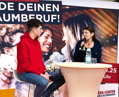 Der Veranstaltungsort ist gewusst gewählt, um viele Menschen zu erreichen. Arbeitsagentur und Jobcenter sind mit einem Bewerberzentrum vor Ort, außerdem präsentieren sich Unternehmen in Interviews.