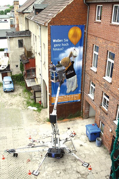 Mit Leiter und eigener Kletterleistung erreicht man gut und gern Höhen bis zu 5 Meter. Bei Arbeiten jedoch, die noch weiter oben erledigt werden müssen, hilft nur noch eine mobile Hebebühne – ABS verleiht solch ein Multitalent preiswert.