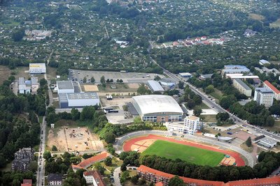 Die Vorbereitungen für den Neubau der abgebrannten Laufhalle auf dem alten Werferplatz an der Von-Flotow-Straße waren abgeschlossen, im August wurde nun der Grundstein für die moderne Trainingshalle gelegt. Der Dank von Oberbürgermeisterin Angelika Gramkow galt aus diesem Anlass vor allem den Anwohnern, die in den Wochen zuvor mit Baulärm und anderen Beeinträchtigungen leben mussten.