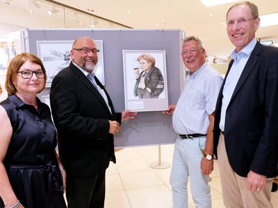 Marienplatz-Galerie die Ausstellung „Ludwig Erhard – gestern, heute, morgen“ zu sehen. Gezeigt werden Karikaturen, die sich auf humorvolle Weise mit dem Wirken des einstigen Wirtschaftsministers und Ex-Bundeskanzlers auseinandersetzen, der als Mitbegründer der sozialen Marktwirtschaft gilt.