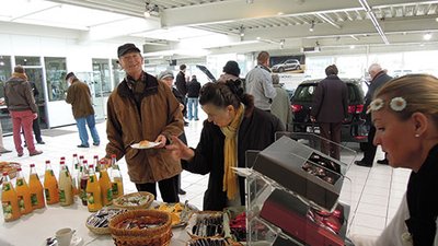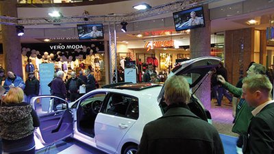 Da staunten die Shopping-Spaziergänger nicht schlecht: Sowohl in der Marienplatzgalerie als auch im Schlossparkcenter wurden sie am 10. November von einem nagelneuen Golf 7 empfangen. In die beiden Einkaufszentren war der neue Star von Volkswagen auf Initiative des TRAVAG-Autohauses gelangt, das die Golf- Premiere damit inklusive seiner Verkaufsräume an insgesamt drei Standorten gleichzeitig veranstaltete – ein anspruchsvolles Unterfangen. „Das ist eine logistische Herausforderung“, sagte Verkaufsleiter Sebastian Trögler angesichts des dreifachen Festes. „Der neue Golf ist einfach das Auto. Den muss jeder einmal gesehen und erlebt haben.“