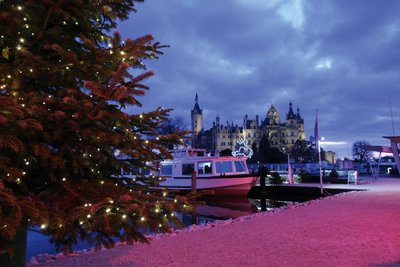 Romantisch. Das ist wohl das Wort, das jedem zuerst in den Sinn kommt, wenn der Blick vom Schweriner Anleger der Weissen Flotte über den See aufs Märchenschloss fällt. Von weihnachtlicher Romantik an diesem schönen Platz können sich Besucher überzeugen, wenn an der Uferkante die „Flotte Weihnacht“ zu vergnügten Stunden im Advent einlädt. Und nicht nur im Advent: Vom 5. November bis 27. Februar ist am Schlossanleger geöffnet – damit wird die romantische Zeit sogar noch ein bisschen ausgedehnt.