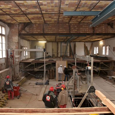 Plenarsaals in der sechsten Etage des Schlosses abverlangt. Unter anderem wird dort die Decke erneuert, wo 300-Kilogramm-Stahlbetonteile abgesägt und weggebracht werden mussten. Der neue Saal erhält eine Stahlbetondecke, die wiederum neue Stahlbetonzüge benötigt.