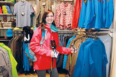 Cindy Reichel, Sportartikel-Fachverkäuferin, betont: „Wir führen viele Produkte renommierter Marken, zum Beispiel von Adidas und Puma. Aber unter anderem auch The North Face, Jack Wolfskin, Mammut und McKinley haben wir im Sortiment.“