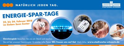 Vom 22. bis 24. Februar finden im Schweriner „Sieben Seen Center“ die 11. Energie-Spar-Tage statt. Hier dreht sich alles um die Themen Energie, Bauen, Wohnen und Umwelt. Aussteller verschiedenster Branchen informieren über ihre Angebote und Dienstleistungen. Die
