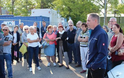 Am 7. September gingen rund sechzig Vertreter der SWG wieder zusammen mit dem Vorstand und weiteren Mitarbeitern der Genossenschaft auf eine kleine Rundfahrt, um sich über bereits realisierte und aktuelle Projekte der SWG zu informieren. Stationen waren die Wohnanlage in der Bürgelstraße, die Schaucontainer mit Assistenzsystemen in der Tallinner Straße und die Baustelle in der Anne-Frank-Straße 31-37.