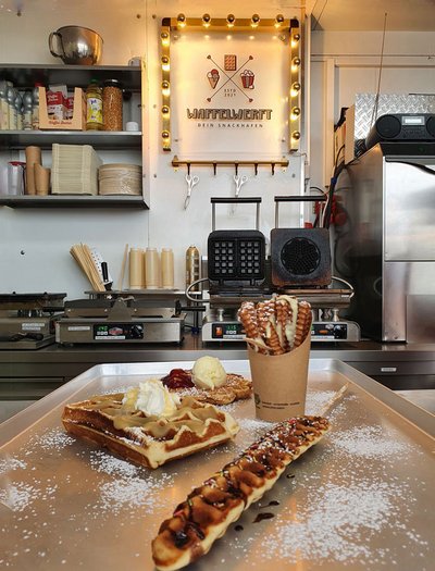 Wie der Name schon sagt, dreht sich dort alles um das zwischen heißen Eisen in Form gebrachte Gebäck. Belgische Waffeln, Waffel-Pommes, Waffel am Stiel und die allseits beliebten Herzwaffeln stehen auf der Karte.