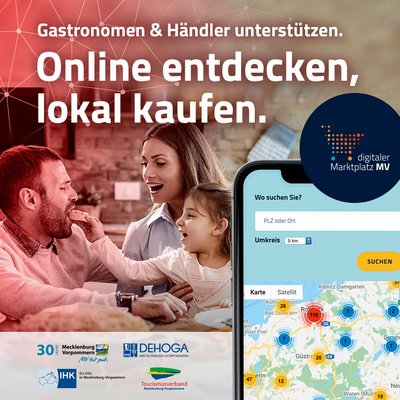 Um in der jetzigen erneuten Lockdown-Situation ein kostenloses Hilfsangebot zu bieten, hat das „Digitale MV“, Stabsstelle im Ministerium für Energie, Infrastruktur und Digitalisierung, den bestehenden Online-Marktplatz um eine neue Seite für gastronomische Angebote erweitert. In der Liste, die immer umfangreicher wird, finden sich alle relevanten Informationen von Kontakt bis Speisekarte – und es wird auf Abhol- und/oder Lieferservice hingewiesen. Auf einer Karte sind alle Standpunkte verzeichnet. Man kann zudem unter mehreren Kategorien suchen und so das passende Lokal finden.