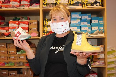 Auch Steffi Saeland steht seit dieser Woche wieder in ihrem Kinderschuhgeschäft in der Schweriner Puschkinstraße. Das ist gut – besonders deshalb, weil kleine Füße schnell wachsen und daher auch eher der Schuh drückt. In den zurückliegenden Tagen musste die Fachfrau aufs Telefon ausweichen, um ihre Kunden zu beraten. Nun ist sie wieder persönlich für Kinder und Eltern da – und mit einer bunten Stoffmaske gut für die gestiegenen Hygieneanforderungen gerüstet.