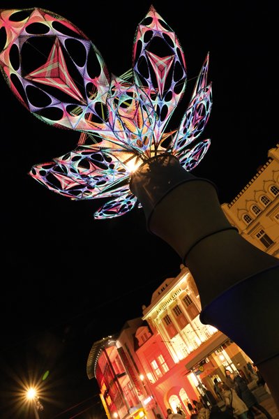 Eines der beleuchteten Elemente an der Marienplatz-Galerie