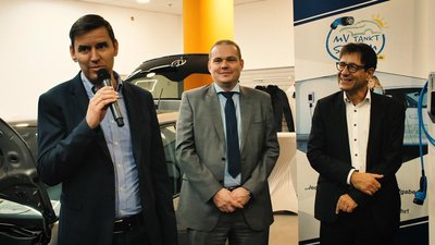 Hannes Ocik und Marie-Louise Dräger tragen sich ins Goldene Buch der Stadt ein